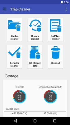 There are some cleaners included in this app. Cache Cleaner helps you to get more free space for the internal phone storage by clearing apps cached files, data files. If you have selected to launch apps by default for some actions. Defaults Cleaner helps you to clear the default settings. SD Cleaner helps to delete junk files from the SD card.