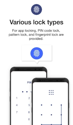 For app locking, PIN code lock, pattern lock, and fingerprint lock are provided.