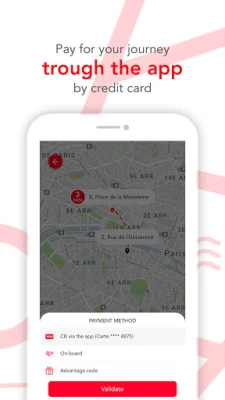 - The possibility tchoose your payment method: pay for your trip directly via the application by adding your credit card (you will receive the invoice tyour email address) or pay for the trip with your driver. All our taxis accept payment cards with nminimum amount (CB, Visa, Eurocard/Mastercard, Amex, JCB).