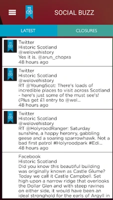Not sure where you want to go? The app includes event information, articles and itinerary features, with new content added regularly to provide a source of inspiration. A view of Historic Scotland on Twitter, Facebook and Instagram gives you the latest ‘social buzz’ all in one place.