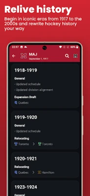 Begin your career from the early days of hockey and lead your team through the ages. Make strategic decisions and leave a lasting impact on the league's history.