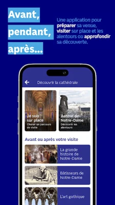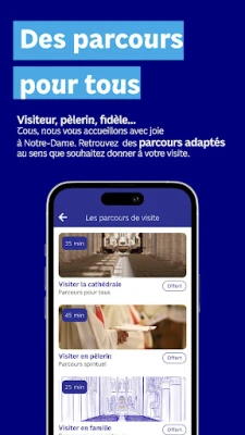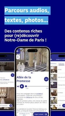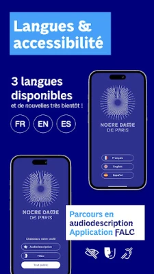 L’application Notre-Dame de Paris est disponible en français, anglais et espagnol et propose des parcours adaptés audiodescription et Facile A Lire et à Comprendre.
