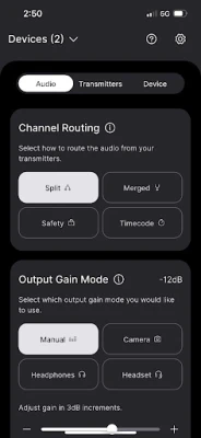 - Gain Mode: Manual, Preset, Headphone, Headset