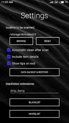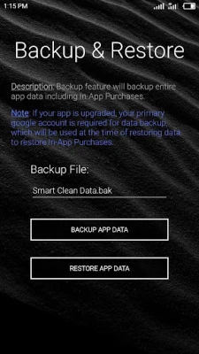 This feature is developed to backup all the data of Smart Clean including blacklist, whitelist, and preferences data.